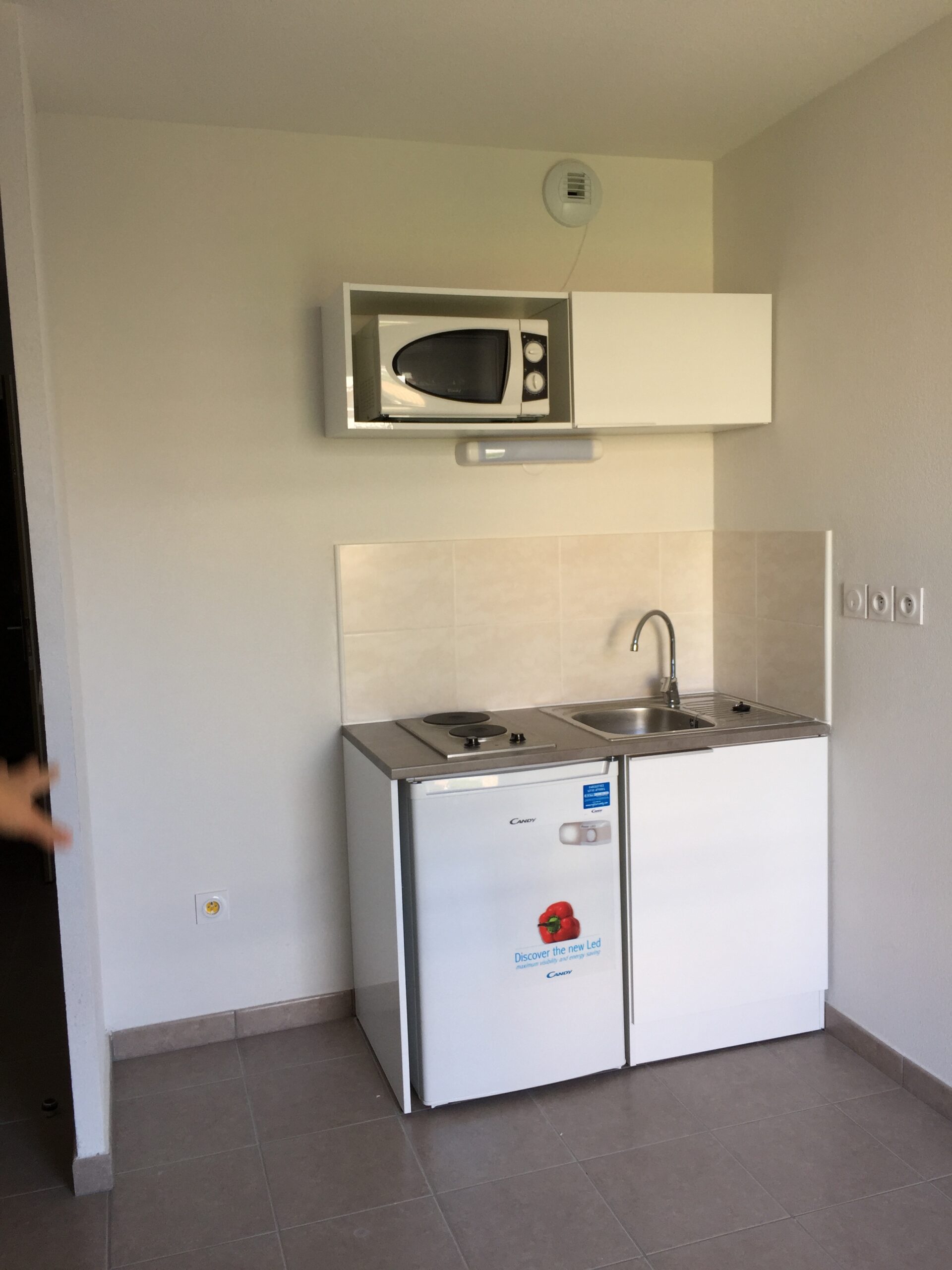 ✅ Un séjour de 14,3 m² avec cuisine ouverte aménagée et équipée (plaque, micro-ondes, frigo)